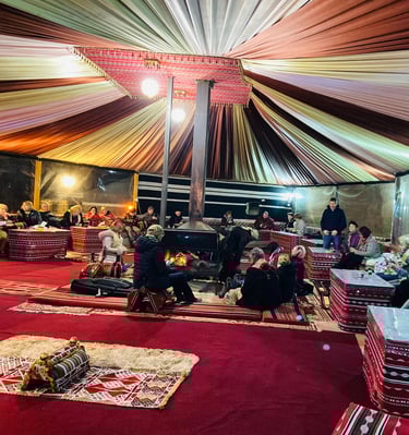 A glimpse inside our cozy luxury tents and desert views.